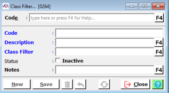 - Code -Press F4 button and 'Class Filter - List' will open.