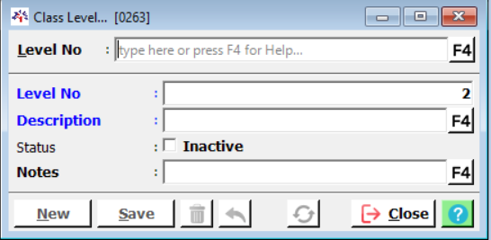 - Level No - Press F4 button, list of options will be displayed. Select the existing level number from the list.