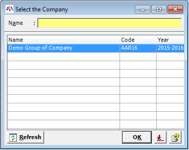 - "Select the Company" window with list of existing company will appear.
