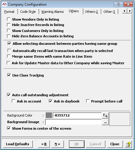 - A multiple tab "Company Configuration" window will open.